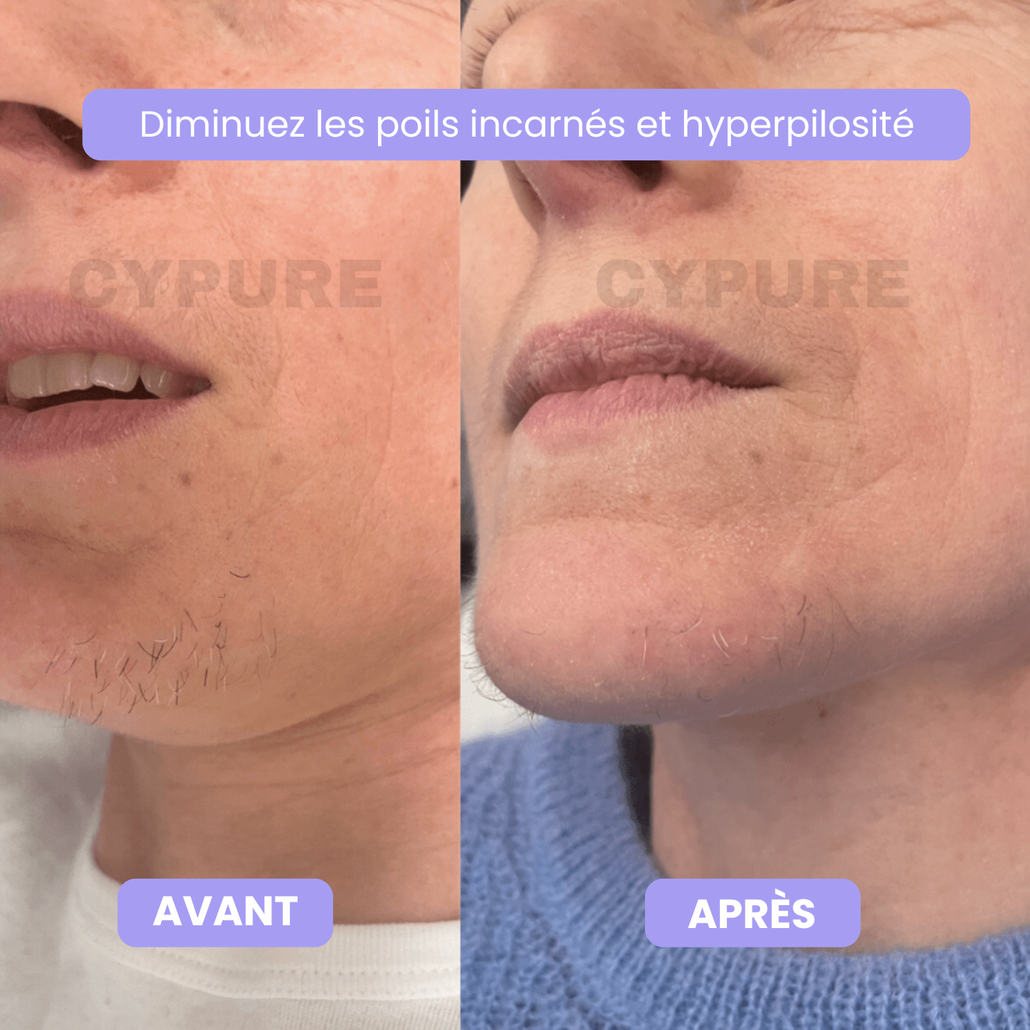 J'ai remarqué une repousse plus lente de mes petits poils au menton et sur la lèvre supérieure.