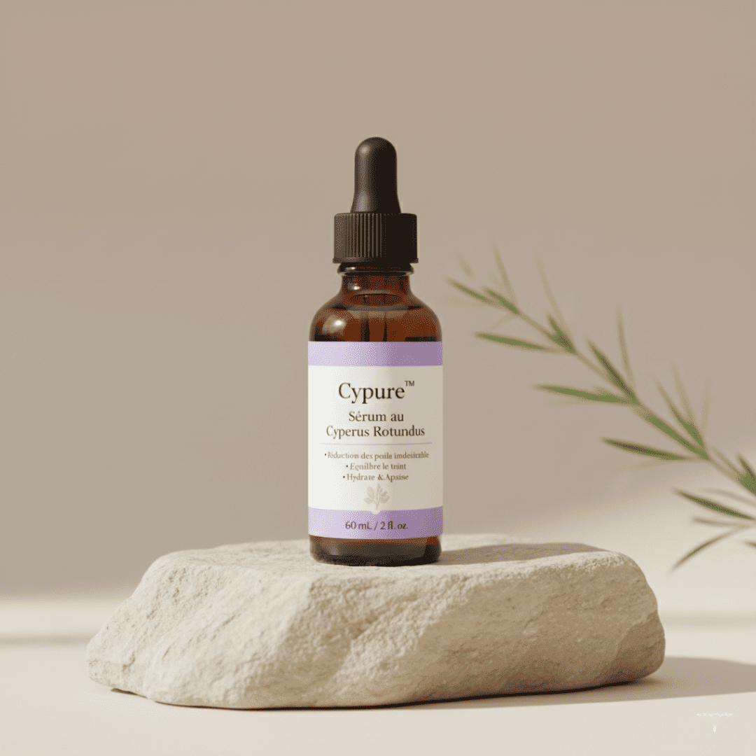 Formulé à base d’extrait naturel de Cyperus Rotundus, le sérum Cypure™ agit directement au niveau du follicule pileux pour ralentir la repousse et affiner les poils indésirables
